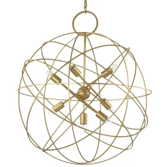 Suspensión redonda compuesta por varios círculos que se cruzan entre sí y crean un movimiento agradable y original en la habitación. Una araña de acabado clásico y luz difusa.