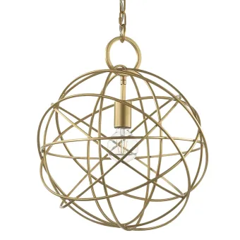 Suspensión redonda compuesta por varios círculos que se cruzan entre sí y crean un movimiento agradable y original en la habitación. Una araña de acabado clásico y luz difusa.