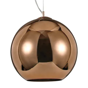 Araña sencilla con una forma evidente pero singular en la decoración del cristal de cobre que la hace particularmente refinada. Una suspensión para instalar en cualquier estancia para iluminar sobre todo hacia abajo o simplemente para un efecto arquitectónico.