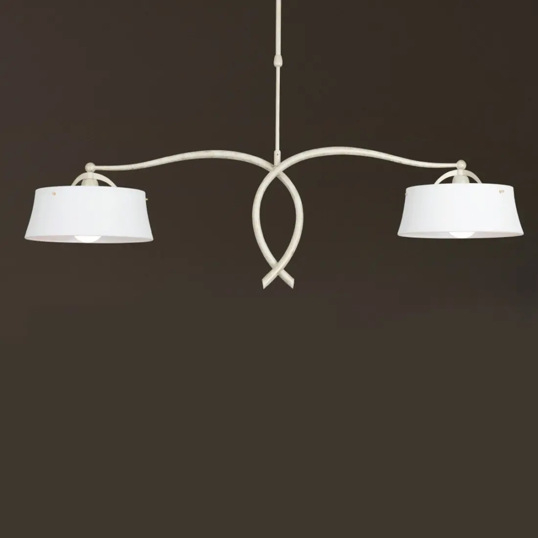 La estructura de la suspensión 1895 2B es de metal pintado marrón oscuro, marfil plata o marfil dorado. Las pantallas son de cristal rigurosamente decorado a mano en pan de oro o en color blanco satinado.