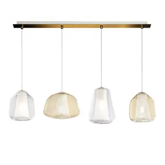 La suspensión Double Skin está compuesta por n. 4 downlights de cristal equipados con portalámparas E27 para bombillas LED.