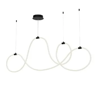 Lámpara de suspensión de interior equipada con LED SMD, estructura de metal pintado negro mate, difusor flexible de silicona opalina blanca de sección redonda.