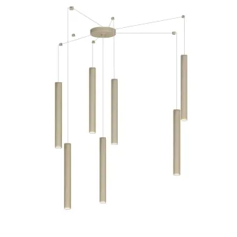 ROUND TUBE 1174 S7 es un elemento de decoración moderno y elegante, ideal para iluminar ambientes como salones, comedores o cocinas. La disposición de los cilindros permite proyectar la luz hacia abajo, creando una iluminación focalizada en mesas o zonas específicas, ideal para cenas o actividades que requieran mayor visibilidad. Un diseño que encuentra una combinación perfecta entre lo clásico y lo contemporáneo.