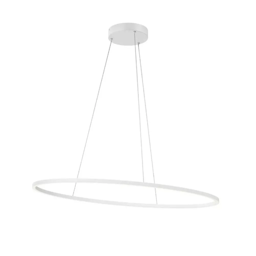 LEO 01-3337 – Lámpara colgante LED con diseño minimalista y brillo equilibrado. La LEO 01-3337 es una lámpara colgante diseñada para espacios modernos que priorizan las líneas limpias, la funcionalidad y un estilo minimalista. Su forma ovalada y su difusor de PVC blanco satinado proporcionan una luz suave y uniforme, ideal para crear un ambiente acogedor sobre mesas de comedor, islas de cocina o salas de estar.