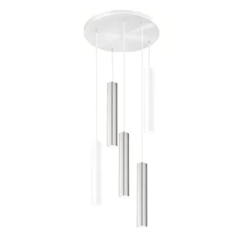 SHOT es una lámpara de techo de cinco luces con un diseño moderno y llamativo. Tres elegantes difusores de aluminio cepillado se alternan con dos difusores blancos, creando un refinado juego de contrastes. La base de techo blanca completa el conjunto con una armonía discreta. De forma sencilla pero visualmente impactante, SHOT es ideal para decoraciones contemporáneas y minimalistas. SHOT es perfecta para quienes desean iluminar con precisión zonas específicas de la habitación, evitando una difusión de luz uniforme. Es apta tanto para hogares como para espacios comerciales y oficinas, convirtiéndose en un elemento decorativo funcional con una fuerte personalidad.