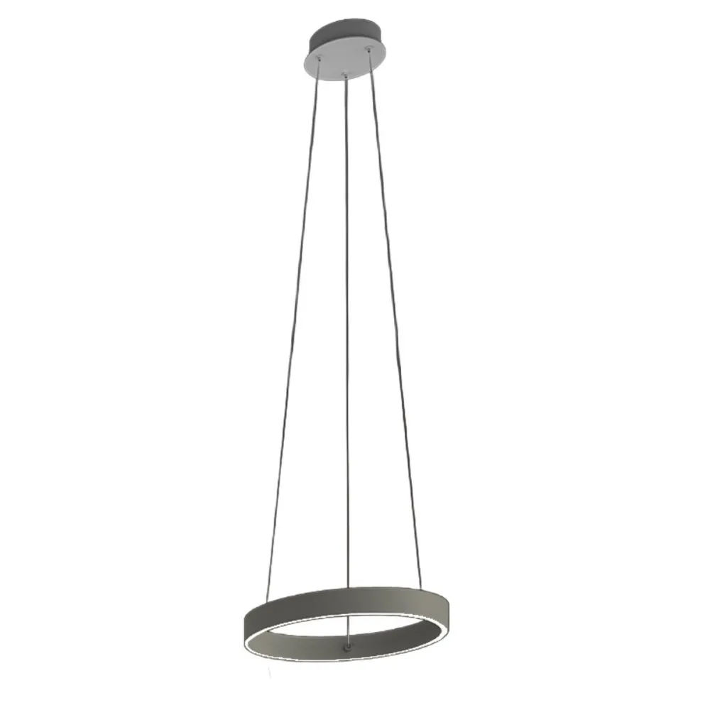 La lámpara GAME S40 incorpora fuentes de luz LED con una potencia total de 36 W y está equipada con un interruptor CCT que permite seleccionar la temperatura de color deseada durante la instalación: luz blanca cálida (3000 K) o luz blanca natural (4000 K). GAME S40 es una lámpara versátil gracias a sus cables ajustables, que permiten regular no solo la altura, sino también la inclinación del anillo según las necesidades, personalizando así la estructura de forma única y original. Este producto representa una solución de iluminación ideal para ambientes domésticos como salas de estar, cocinas y dormitorios, así como para entornos comerciales y profesionales como oficinas, hoteles, restaurantes, showrooms, tiendas, etc.