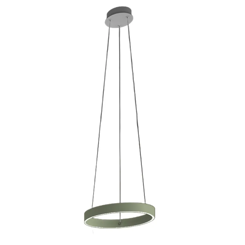 La lámpara GAME S40 incorpora fuentes de luz LED con una potencia total de 36 W y está equipada con un interruptor CCT que permite seleccionar la temperatura de color deseada durante la instalación: luz blanca cálida (3000 K) o luz blanca natural (4000 K). GAME S40 es una lámpara versátil gracias a sus cables ajustables, que permiten regular no solo la altura, sino también la inclinación del anillo según las necesidades, personalizando así la estructura de forma única y original. Este producto representa una solución de iluminación ideal para ambientes domésticos como salas de estar, cocinas y dormitorios, así como para entornos comerciales y profesionales como oficinas, hoteles, restaurantes, showrooms, tiendas, etc.