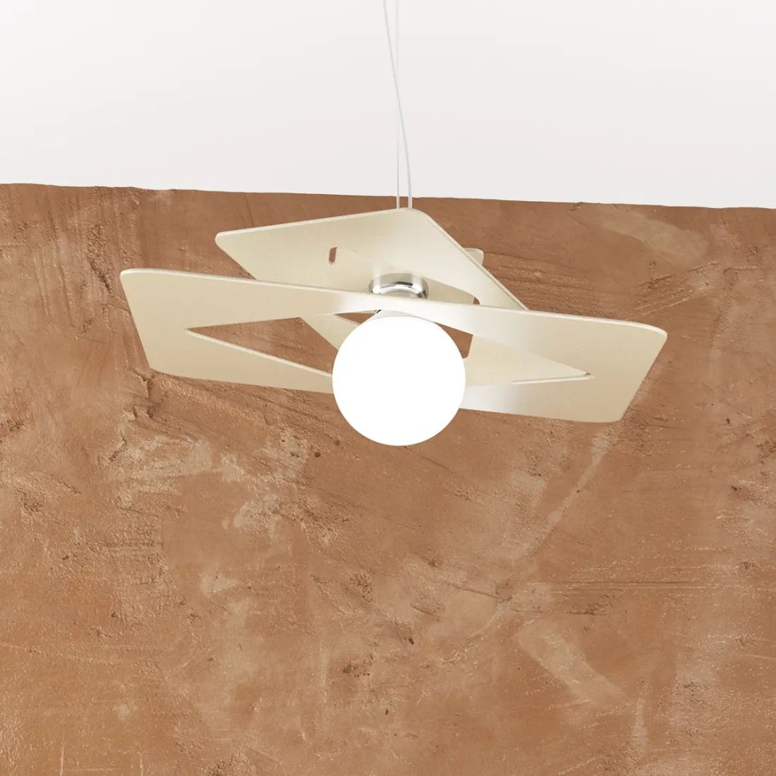 Suspensión con una forma geométrica decidida y verdaderamente única en su diseño. Una araña ultramoderna de metal pintado para adaptarse tanto a cualquier superficie de apoyo como al centro de la estancia. El difusor de metal permite tener juegos de luces y sombras en la estancia. Un producto Made in Italy.