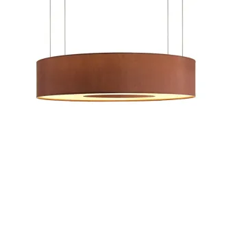 SATURNO es una luminaria de suspensión caracterizada por la pantalla en tejido burdeos GRF13102 , lino GRF13101 o malla negra GRF13103 , montada sobre un marco y por su geometría anular, completa con una pantalla de pergamino translúcido. Permite obtener efectos de luz difusa, se puede suspender gracias a los cables de acero cubiertos con una funda transparente; la altura de la suspensión es regulable con sistema autoblocante "grip lock" hasta una altura máxima de 350 cm. Cable de alimentación en FEP+PVC transparente, longitud 370 cm.