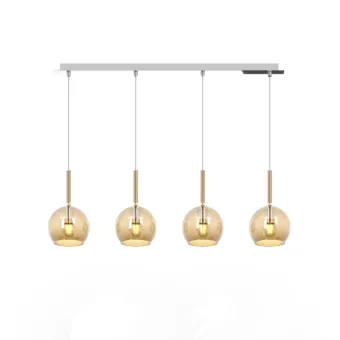 Reglette rectangular de cuatro gotas de forma sencilla y original en su color del vidrio soplado. Una suspensión multiluminal que difunde luz, color y originalidad en la estancia. Una lámpara de araña para adaptarse a cualquier superficie o en el centro de la habitación incluso a diferentes alturas.