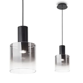 Un perfil de deslumbrante elegancia construido a partir del encuentro de dos cilindros de diferentes tamaños. Hugo no esconde nada es el encanto de mostrarse tal y como es. Suspensión moderna en vidrio cilíndrico para muebles con un toque contemporáneo.