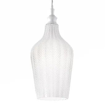 Pequeña y singular lámpara de suspensión realizada en cristal blanco opaco. Una lámpara de techo para instalar en casi cualquier lugar y en múltiples versiones, incluso en alturas escalonadas para crear un agradable movimiento en la estancia. El vidrio Cleofe S12 puede asociarse con otros vidrios de la misma serie y crear más puntos de luz para una mayor luminosidad y un efecto de decoración único.