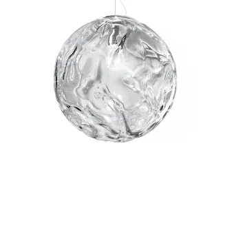 Araña con la forma simple de un globo terráqueo y sorprendente en su efecto luminoso. Una esfera de cristal transparente que destaca por su elaboración irregular y que gracias a ella crea espectaculares decoraciones sinuosas en las paredes que la rodean. Una araña ideal para adultos y niños.