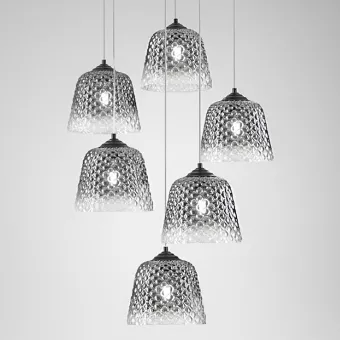 La suspensión Alice SP6 está equipada con seis portalámparas E27 para bombillas LED.