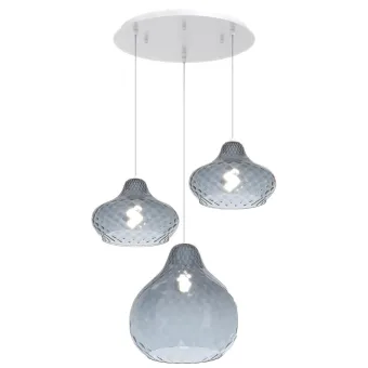 Lámpara de araña de tres luces fabricada con cristal de zafiro soplado original y caracterizada por un proceso de tejido que hace que esta luminaria sea más única que rara. Una lámpara de techo sin duda adecuada para muebles contemporáneos, como el salón, el dormitorio doble, el estudio, la entrada u otra estancia donde la luz aporta un toque de color.
