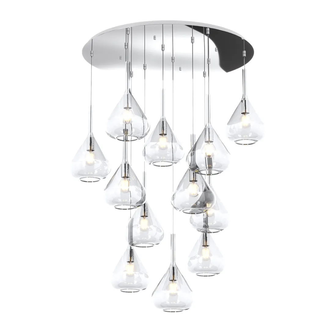 La lámpara KONA 1177 CR S12 T TR tiene capacidad para albergar hasta doce bombillas LED con casquillo E27, lo que te permitirá reducir tu factura eléctrica gracias a su baja emisión de calor y su larga duración.