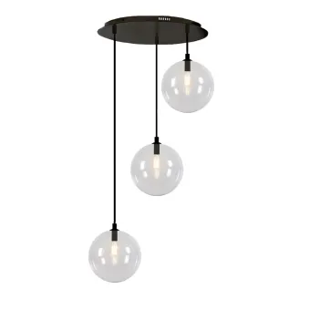 PALLINA SP TO 3 NR es una moderna suspensión compuesta por tres cristales esféricos transparentes o satinados. Una estructura extravagante que contribuye a un efecto de luz glamuroso. La luz sale de forma difusa, filtrándose a través del cristal con un efecto suave y muy acogedor que no deslumbra.
