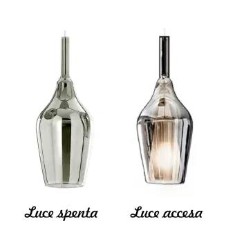 OFELIA MINI S12 , apagado o encendido, es hermoso durante el día e impresionante por la noche. Los acabados de espejo en oro, cromo y cobre que, sólo cuando se encienden, revelan la presencia del cono de luz interno, realzan cromáticamente esta colección y aportan un detalle original, para descubrir en el momento adecuado.