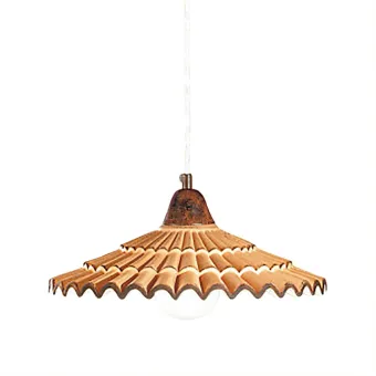 Suspensión en cerámica clásica, agradable en el diseño que recuerda el antiguo techo de tejas de las casas de antaño y con luz dirigida exclusivamente hacia abajo. Una línea sencilla que no pasa desapercibida y aporta calidez a la estancia.
