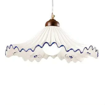 Suspensión diámetro 40cm en cerámica festoneada decorada a mano, E27 LED IP20