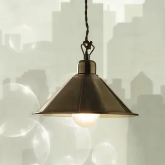 La lámpara de suspensión STREET SP no es solo un accesorio de iluminación, sino un elegante mueble, ideal, por ejemplo, para realzar los muebles rústicos . Está realizado íntegramente en metal bruñido con una placa que le confiere un carácter antiguo y nostálgico. El difusor de forma clásica de 21 cm de diámetro y 9 cm de altura se fija al cable eléctrico revestido de tejido trenzado marrón de altura máxima regulable de 130 cm, que a su vez se fija al rosetón.