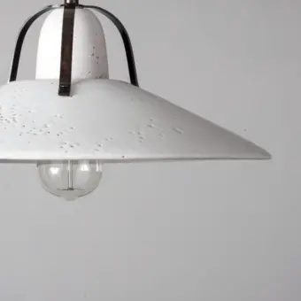 La suspensión mide una base de anclaje al techo de 11 centímetros de diámetro, una placa de 25 centímetros de diámetro y una altura total regulable de 150 centímetros.