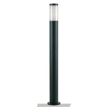 Lámpara de pie de exterior con la sencilla forma de un cilindro que recuerda la linealidad de una cerilla. Una lámpara de pie moderna y de luz difusa que se identifica plenamente con el entorno que la rodea.
