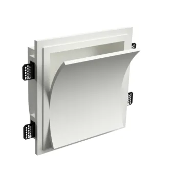 La lámpara de pared empotrada totalmente oculta llamada ABLE 155 es una opción discreta y elegante para iluminar tus estancias sin comprometer la estética de tu espacio. Esta lámpara está diseñada para integrarse completamente en la pared, siendo la única parte visible una doble aleta asimétrica. La superficie del cuerpo de yeso es blanca, pero se puede pintar o colorear si es necesario, lo que permite diseños más personalizados. La luz se emite hacia arriba y hacia abajo.