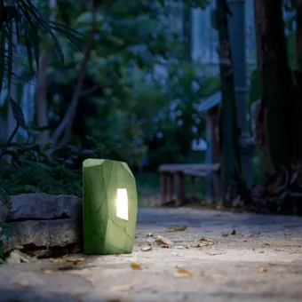 SER 1102 es un producto arquetípico, un híbrido que combina los principios de la tecnología y la naturaleza. Un producto flexible y dinámico en su uso, con una estética esencial y de camuflaje. Lámpara de pie para exterior fabricada en material de alta calidad, con aspecto de piedra, para integrarse totalmente con los espacios exteriores.