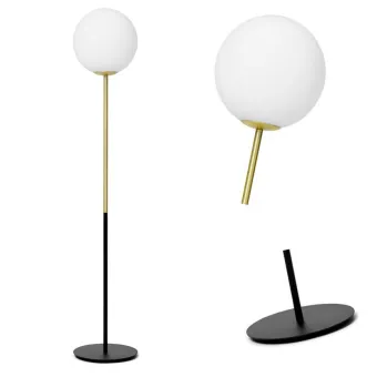 La lámpara de pie JUGEN 1744.62 es un mueble que combina diseño sencillo, clásico y moderno. Con una fina varilla de metal negra o dorada y una pantalla esférica redonda de color blanco lechoso, esta lámpara añade un toque de elegancia y estilo a tu salón. La base redonda garantiza estabilidad y solidez a la lámpara.