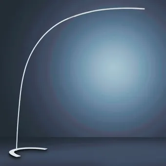 Lámpara de pie moderna con brazo en arco con un diseño realmente esencial pero eficiente en sus prestaciones lumínicas. Una lámpara de pie imprescindible que no apelmaza los muebles y proporciona una amplia gama de iluminación. Una luminaria práctica y funcional para iluminar zonas difíciles o simplemente para dar un toque contemporáneo a la estancia.