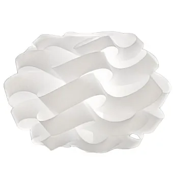 Acabado blanco. El material con el que está fabricada la pantalla es polilux, un material de alto rendimiento lumínico que mejora y amplifica la difusión de la luz, resistente a los golpes y repelente al polvo. Un material no tóxico libre de cualquier sustancia nociva, probado y certificado según la ley.