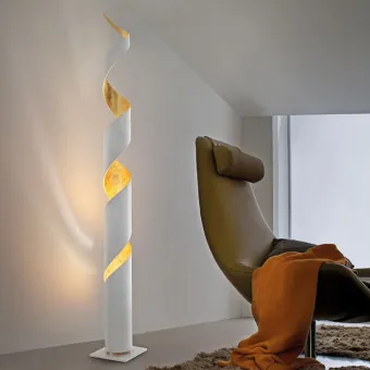 Lámpara de pie moderna de forma envolvente. Un modelo que además de iluminar consigue completar la decoración, un objeto que capta la mirada más ausente y crea una situación agradable. Iluminar y amueblar al mismo tiempo. Un producto Made in Italy.