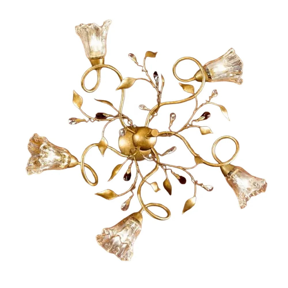 Lámpara de techo clásica Due P Illuminazione EMMA PL5 E14 LED metal francés oro ámbar vidrio cristal gotas