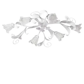 Lámpara de techo clásica floral acabada con hojas y pequeñas campanas de cristal que difunden la luz por toda la estancia. Una lámpara de techo para adaptar en una decoración clásica o en un estilo shabby chic donde iluminación y mobiliario encuentran una combinación perfecta en cualquier estancia. Un producto Made in Italy