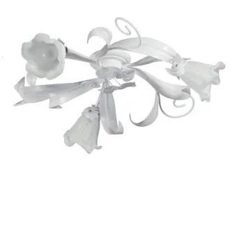Lámpara de techo clásica floral acabada con hojas y pequeñas campanas de cristal que difunden la luz por toda la estancia. Una lámpara de techo para adaptar en una decoración clásica o en un estilo shabby chic donde iluminación y mobiliario encuentran una combinación perfecta en cualquier estancia. Un producto Made in Italy