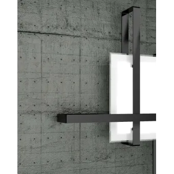 CROSS es una colección de lámparas compuesta por una estructura de metal pintado de blanco y un difusor de cristal extraclaro satinado con borde transparente. Completado con tres bandas decorativas disponibles en tres acabados diferentes; blanco, negro o arena.