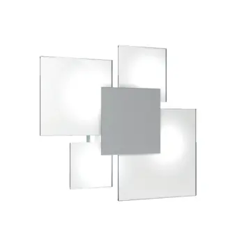 Lámpara moderna de techo o pared con forma geométrica. Lámpara de techo o de pared realizada con dos tamaños de cristal diferentes para dar un juego agradable y original a la estancia. Iluminación difusa que permite tener un toque de color en el ambiente circundante.
