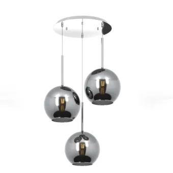 FUTURE 1155CR/S3 TG con rosetón redondo de metal cromado y 3 termos de vidrio Pyrex de 20 cm de diámetro disponibles en acabados transparente, ámbar, cromo, oro y cobre. Una colección que ofrece una amplia posibilidad de elección gracias a las numerosas variaciones disponibles. Cables regulables en longitud. Un elemento moderno y sumamente versátil con una excelente relación calidad/precio, ideal para cualquier contexto, especialmente para instalación en salón o cocina. La apertura inferior de las ampollas permite un fácil mantenimiento y limpieza. Gracias a los portalámparas con casquillo E27 es posible insertar cualquier tipo de fuente de luz LED con la potencia y color de luz según tus necesidades. Las bombillas se venden por separado.