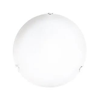 Plafón redondo en cristal blanco satinado con luz difusa. Una lámpara de techo sencilla y ligera que no sobrecarga el mueble y se puede instalar en cualquier lugar y en cualquier decoración.