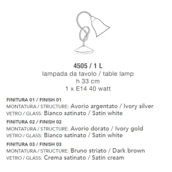 4505 1L es una lámpara de mesa clásica producida y fabricada en Italia por la empresa de iluminación LAM .