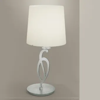 Lámpara de sobremesa clásica con un diseño singular, gracias al trabajo plano del brazo que la hace más única que rara. Una pantalla acabada en cristal soplado blanco que difunde la luz por toda la estancia. Un producto Made in Italy