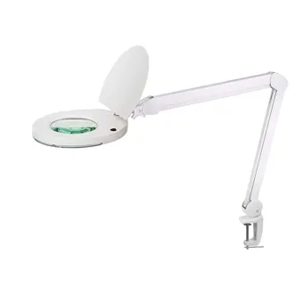 El cuerpo de iluminación tiene una estructura de plástico blanco. Completo con abrazadera, lupa e interruptor táctil colocado en el difusor.