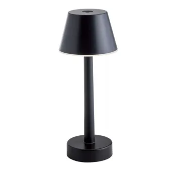 Se trata de una lámpara de mesa LED que funciona con pilas, con intensidad de luz y color regulables mediante un cómodo toque en el centro del cabezal de la lámpara. El puerto de carga USB está ubicado en la base de la parte superior, en el centro del altavoz, y el dispositivo está equipado con indicadores LED rojo (batería baja) y verde (batería completamente cargada).