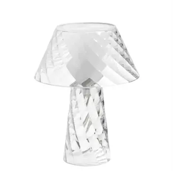 La característica principal de la lámpara TATA está representada por la superficie facetada de la pantalla y la base; este tipo de procesamiento ofrece un particular efecto de refracción de la luz. En la base, las facetas de la superficie están torcidas para dar un efecto diamante a toda la lámpara. Para una iluminación adicional agradable en la mesita de noche, el aparador, el alféizar, la mesa, etc... es perfecto. Se obtiene una luz DIFUSA mientras que la parte coloreada brilla discretamente. (Materiales plásticos reciclables)