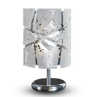 Lámpara de sobremesa, cristal artístico artesanal, pan de plata y negro, LED E14