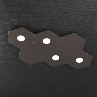 Lámpara de pared o plafón en metal pintado con luz difusa. Plafón compuesto por elementos hexagonales para ser instalado tanto en el techo como en la pared para una luz homogénea y bien distribuida. Elementos de luz + elementos decorativos que puedes disponer a tu gusto. Un producto Made in Italy.