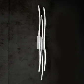 SCIA PL3 es un plafón o aplique de carácter moderno compuesto por tres barras de luz LED que iluminan la estancia con una luz intensa y de bajo consumo. La estructura metálica pintada en blanco, gris (como en la foto), dorado o negro o decorada artesanalmente en pan de oro.