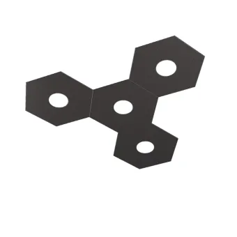 Colección de lámparas hexagonales formadas por placas de metal pintadas en diferentes acabados, BLANCO, GRIS, ARENA, MARRÓN, GRIS, ANTRACITA, HOJA DE PLATA, HOJA DE ORO o HOJA DE COBRE. El plafón monta cuatro portalámparas con casquillo GX53 para una bombilla LED de 9W máx. excluida.