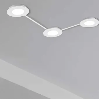 El plafón o aplique de pared se puede componer y personalizar con un mínimo de 2 puntos de luz hasta un número ilimitado y todo desarrollado por la salida de un único orificio del techo.
